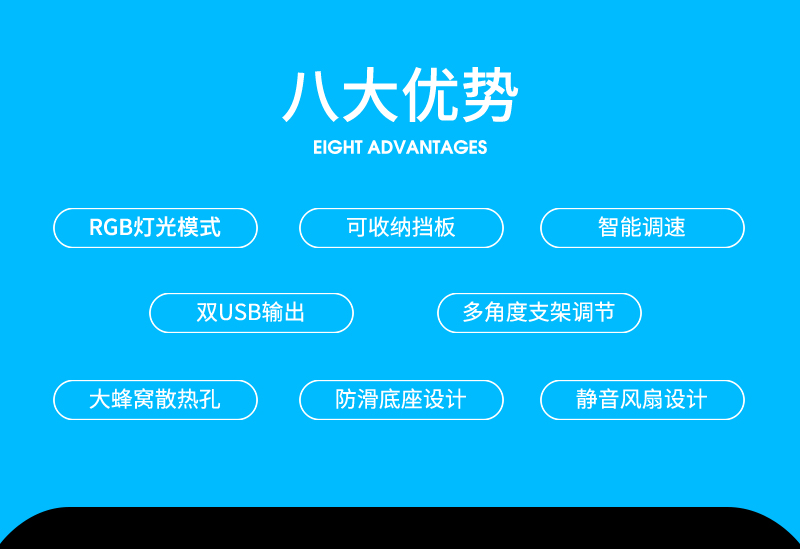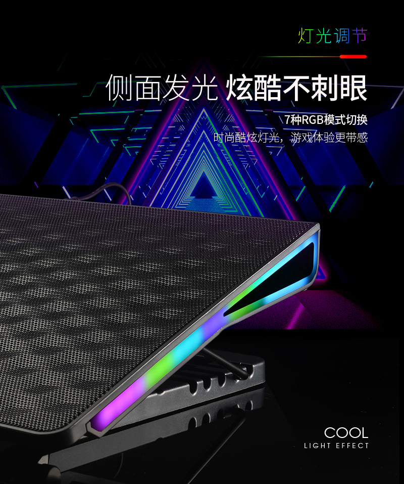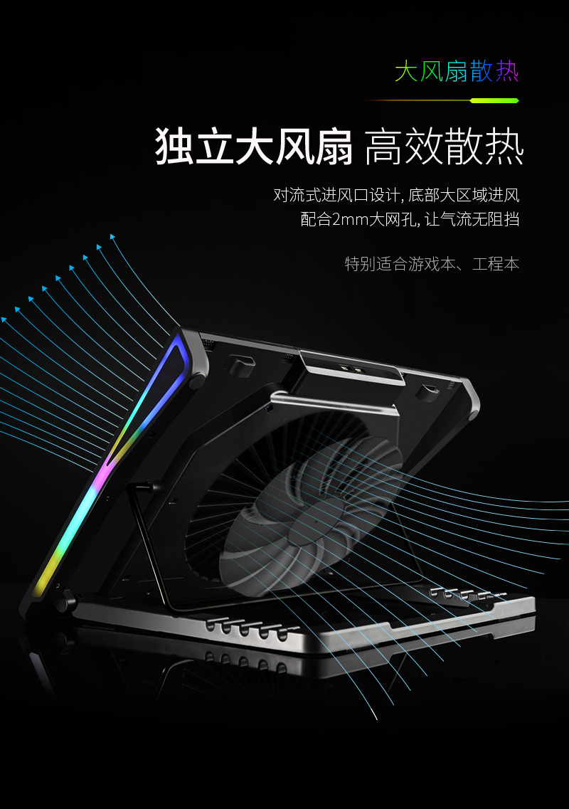 這款散熱器主要上貓,產品特點主要是獨立大風扇,風量大,RGB七彩炫光,可調可控,所以在設計中根據產品調性,以深色為主色調,對產品的功能,特點進行深度挖掘,加上特效演示,來展示產品的設計原理,上線后轉化率明顯上升。